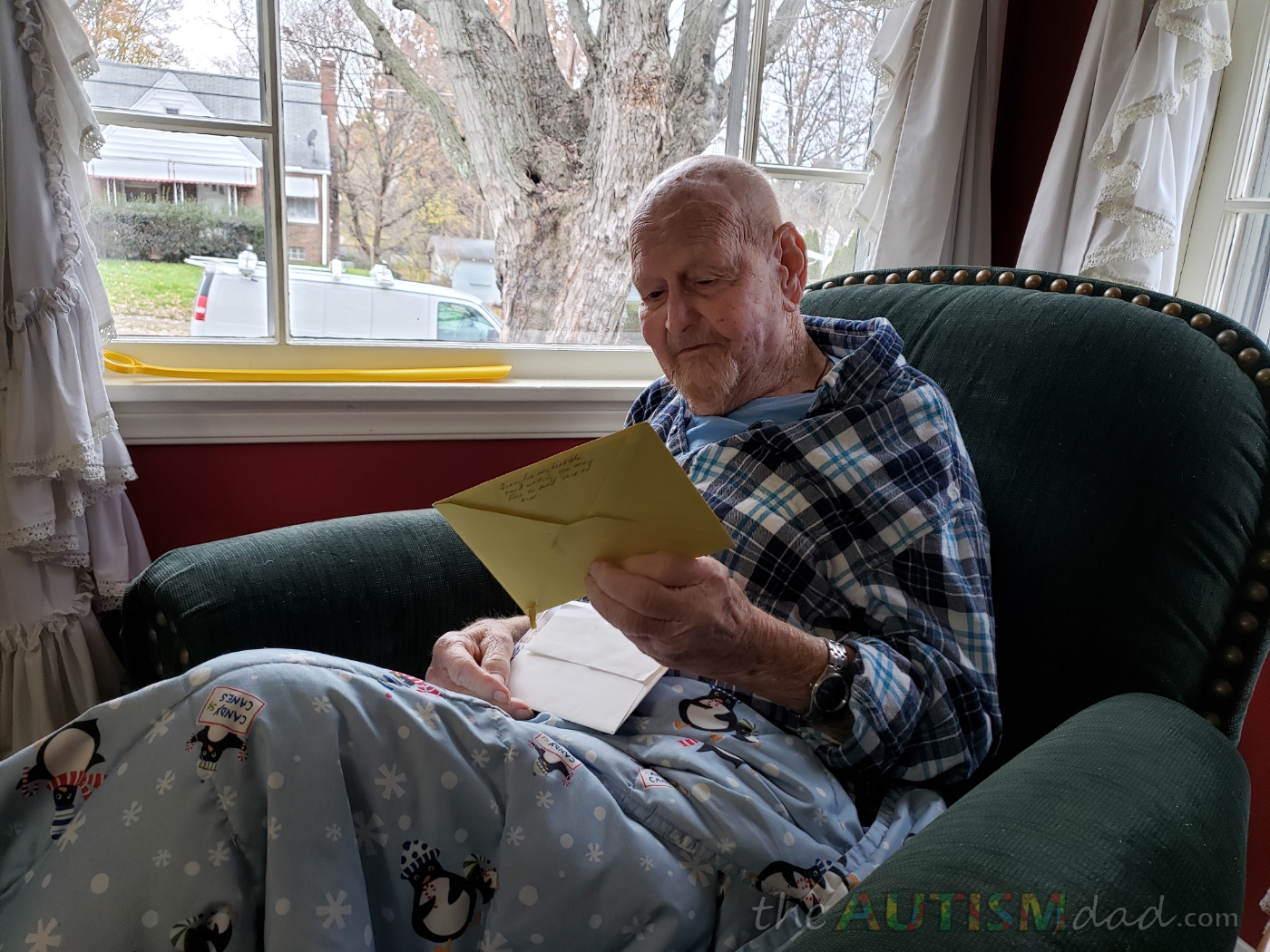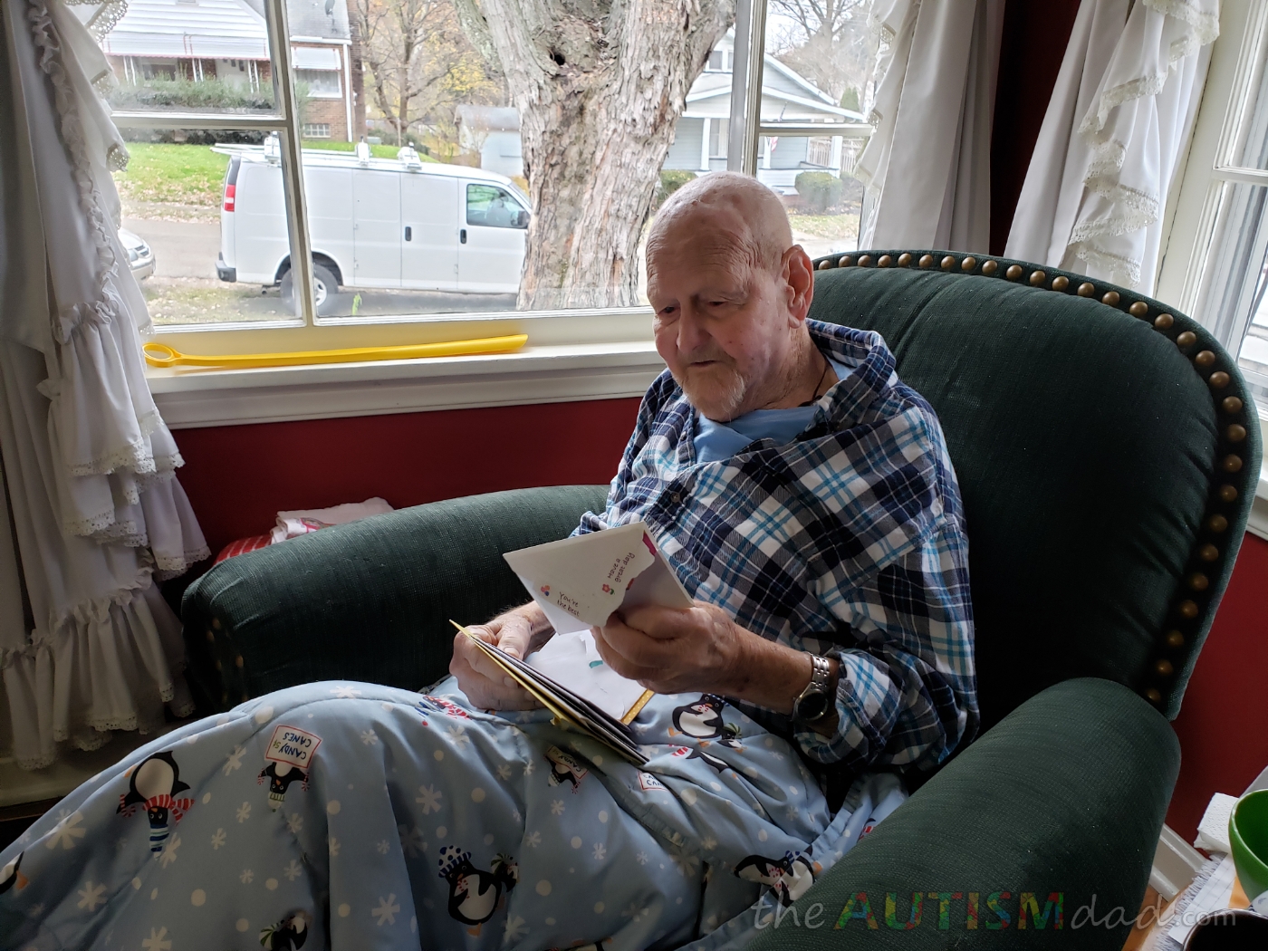 This was Grandpa opening some of the cards he my followers had sent him, wishing him well and thanking him for his service to our country. He got cards from all over the country. Once again, thank you all so much. ☺