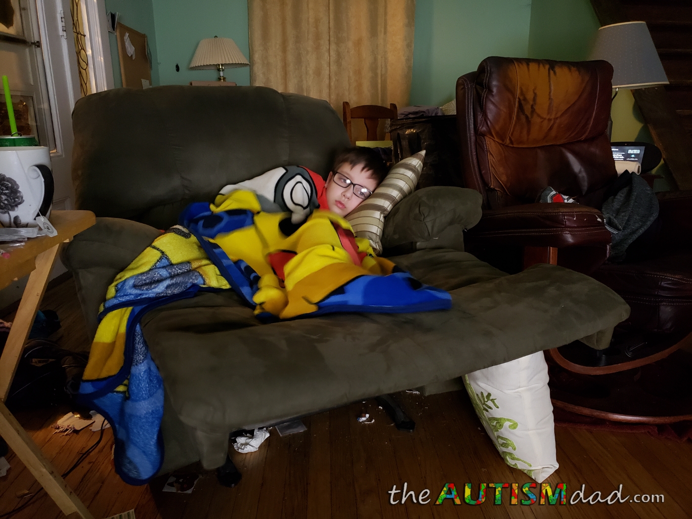 Unfortunately, the day went downhill after we picked up the boys and brought them home. Emmett wasn't feeling well and we tried to get him to rest. He was absolutely miserable at bedtime and had a rough time falling asleep. While he did eventually drift off, he woke up shortly after and was definitely feeling worse. He came downstairs in tears and we made him comfortable on the couch.
