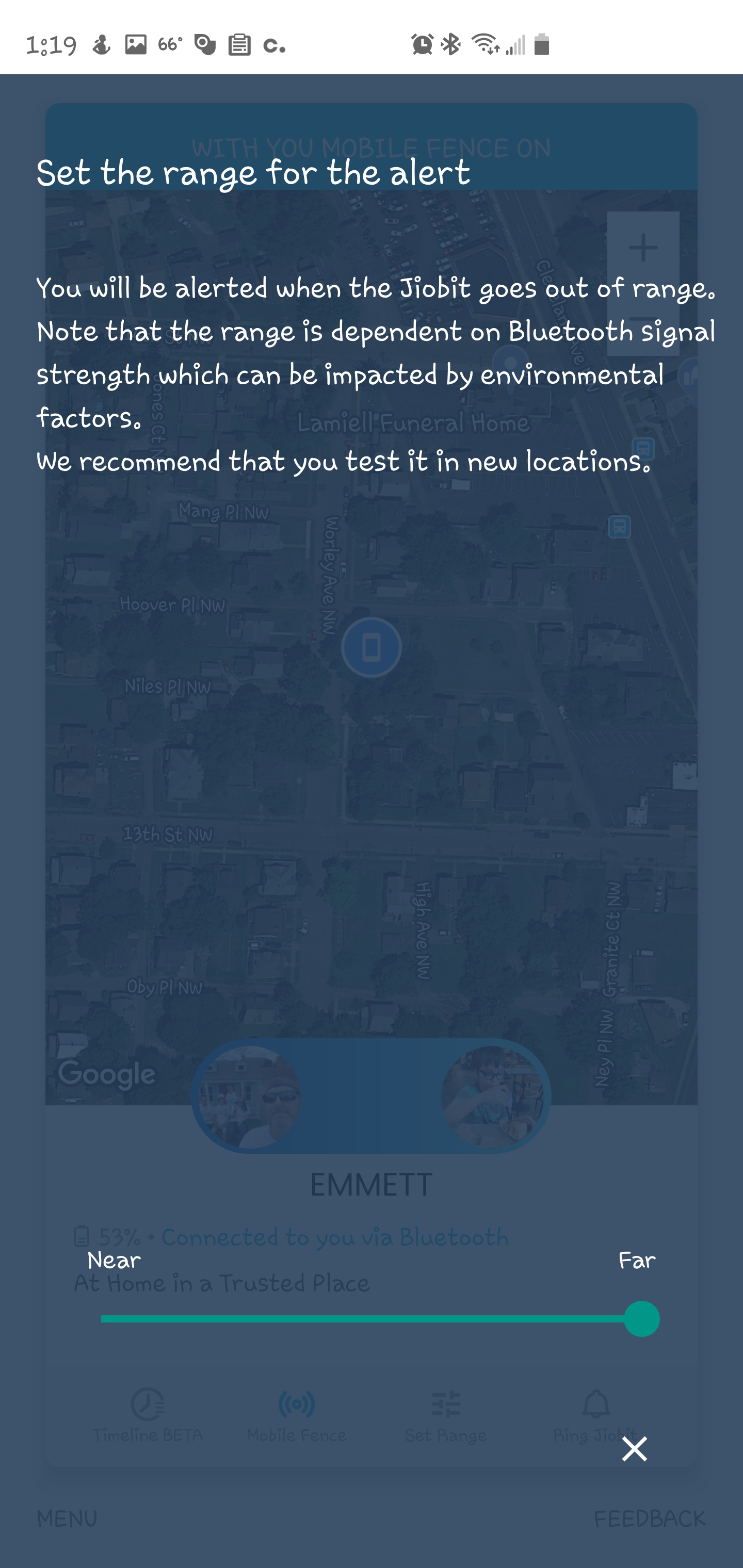 Jiobit also has a feature that allows you to create a mobile geofence. Let's say you're at the park or in another public place. When your child wears the Jiobit, they can be digitally tethered to your phone. If they break the predefined or allowed distance, you will be notified. This is important because kids can wander off, even if you turn your head for just a moment.