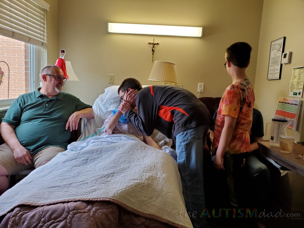 Elliott was not comfortable going, but Emmett and Gavin both wanted to say goodbye. We wanted to keep a close eye on Gavin because we weren't sure how he was going to react. Historically, Gavin doesn't seem to experience or at least display emotions, the way most others do. He says things that he shouldn't, not out of malice but rather social awkwardness, but that can still make a bad situation worse. We're just cautious with him.