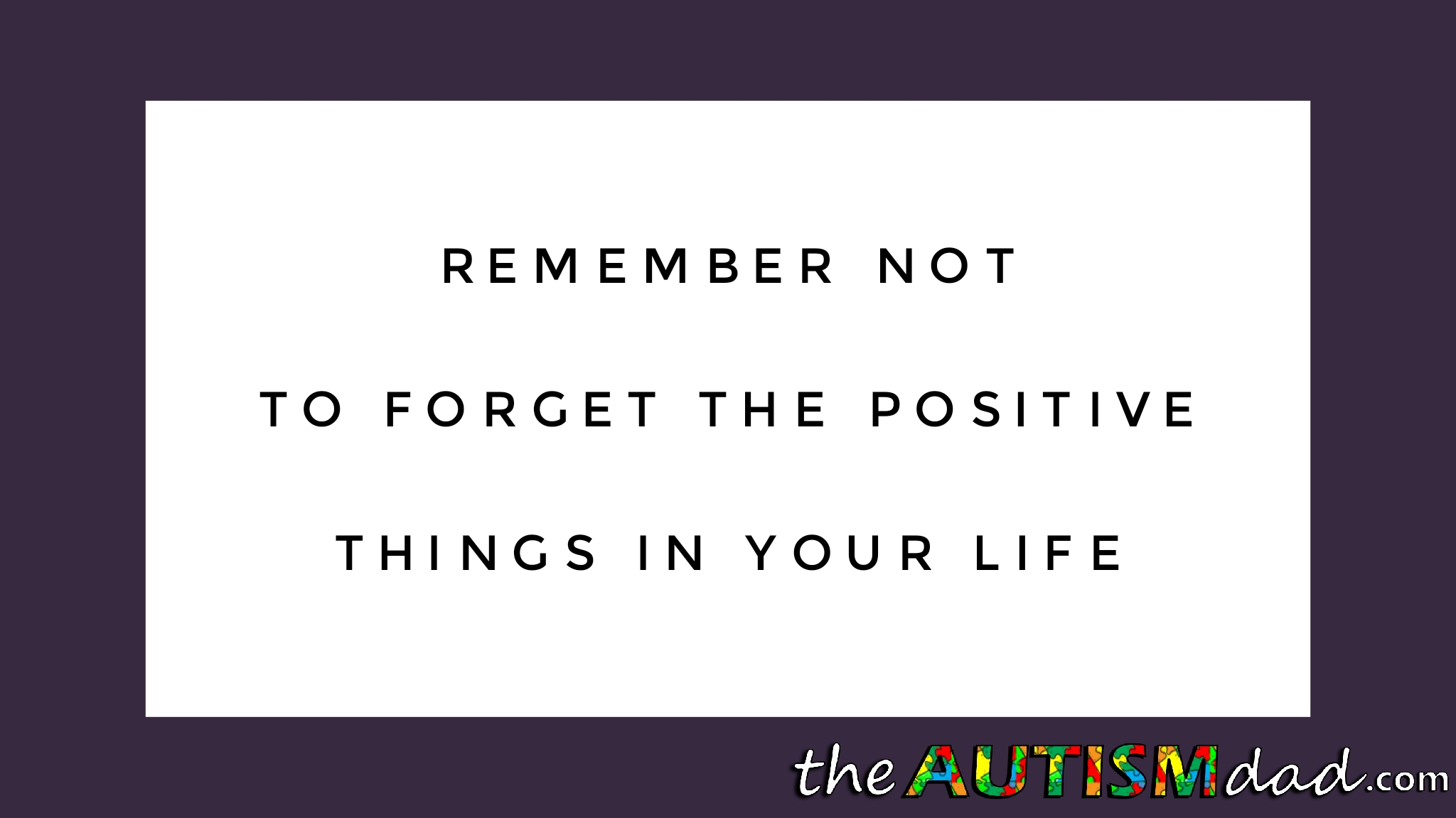 Before I close out today, I just want to encourage you all to remember not to forget the positive things in your life.