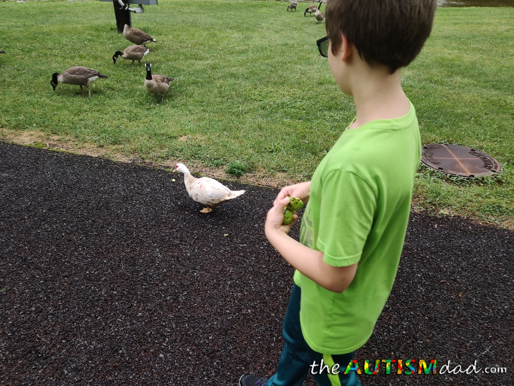 Emmett and I went one lap around the track, and he did great. He has so much energy and can be difficult to contain, but it was fun. I was able to show him the new ducks, and he got to visit his old friend, the lonely duck.
