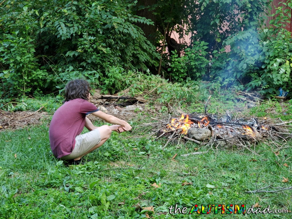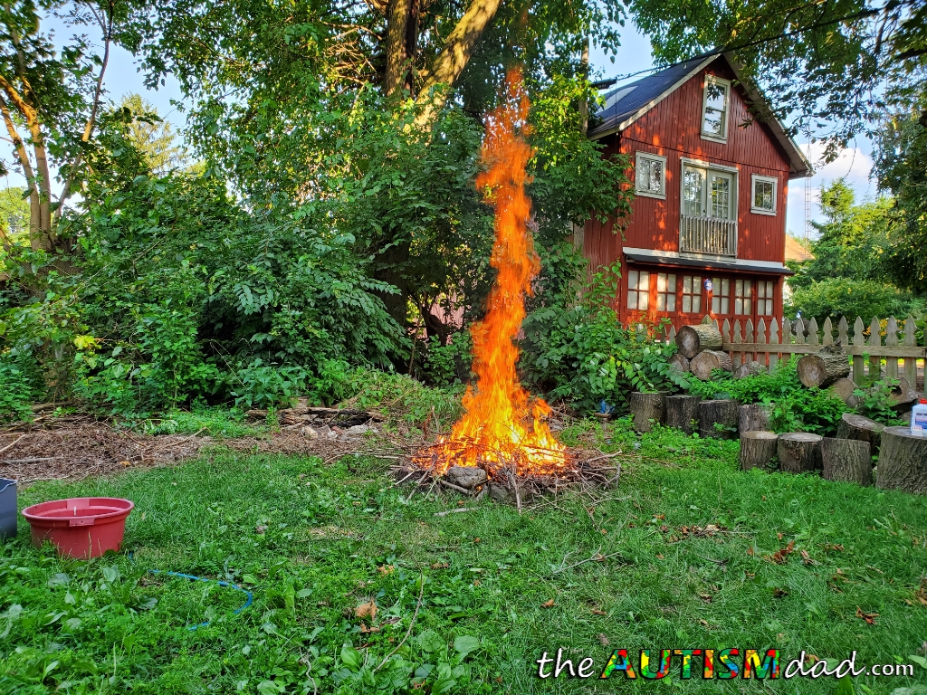 Anyway, as soon as I got home from the park, we immediately got a bonfire going. I've been promising the kids that we would have one with week but it's not worked out. I wanted to make sure we got this done for them because they've been looking forward to it.