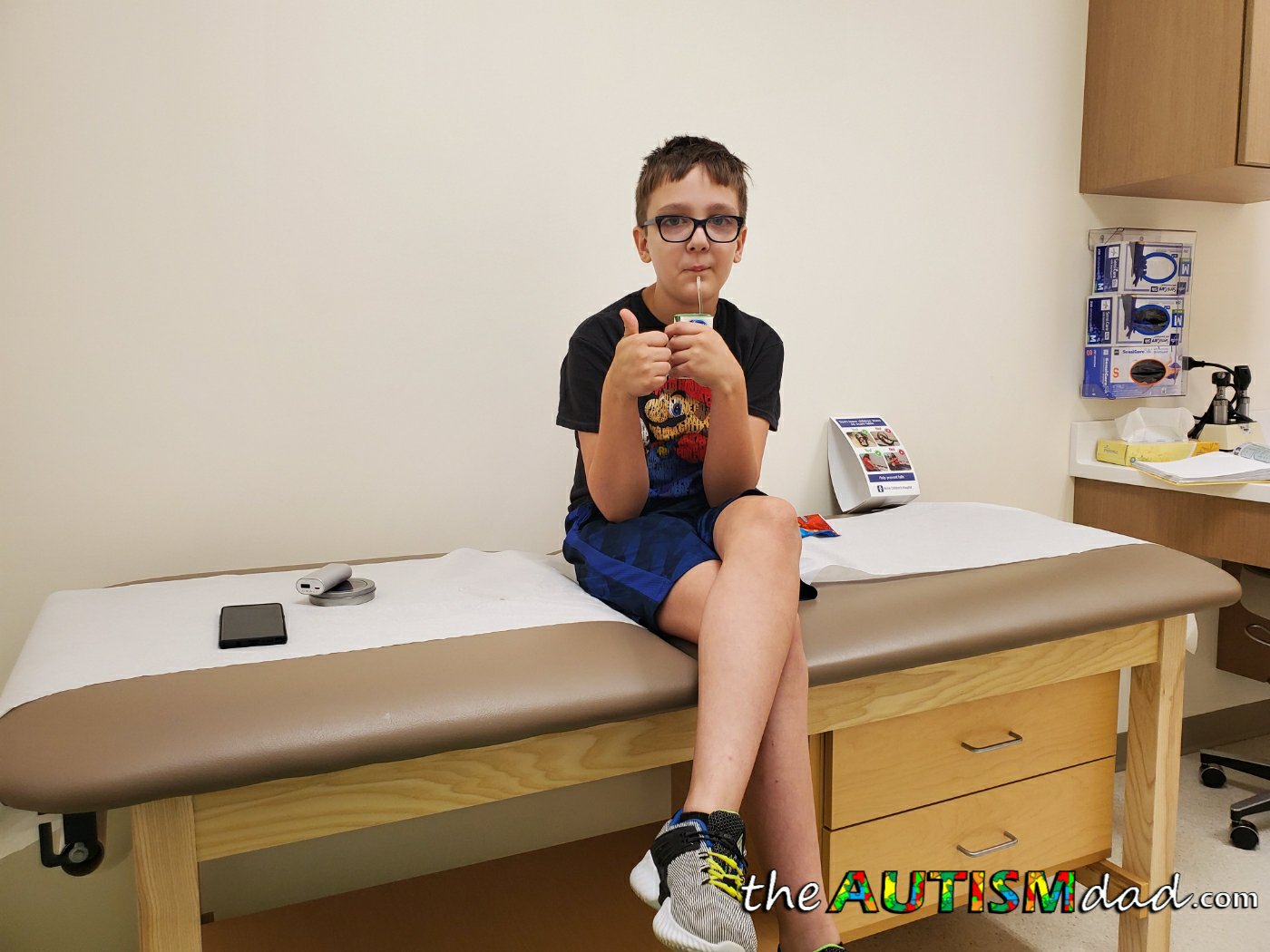 Today he received his Meningitis and Tetanus vaccines. That amounted to one in each arm and he didn't feel either of them. Our nurse at Akron Children's Hospital was fantastic and helped Emmett feel comfortable.