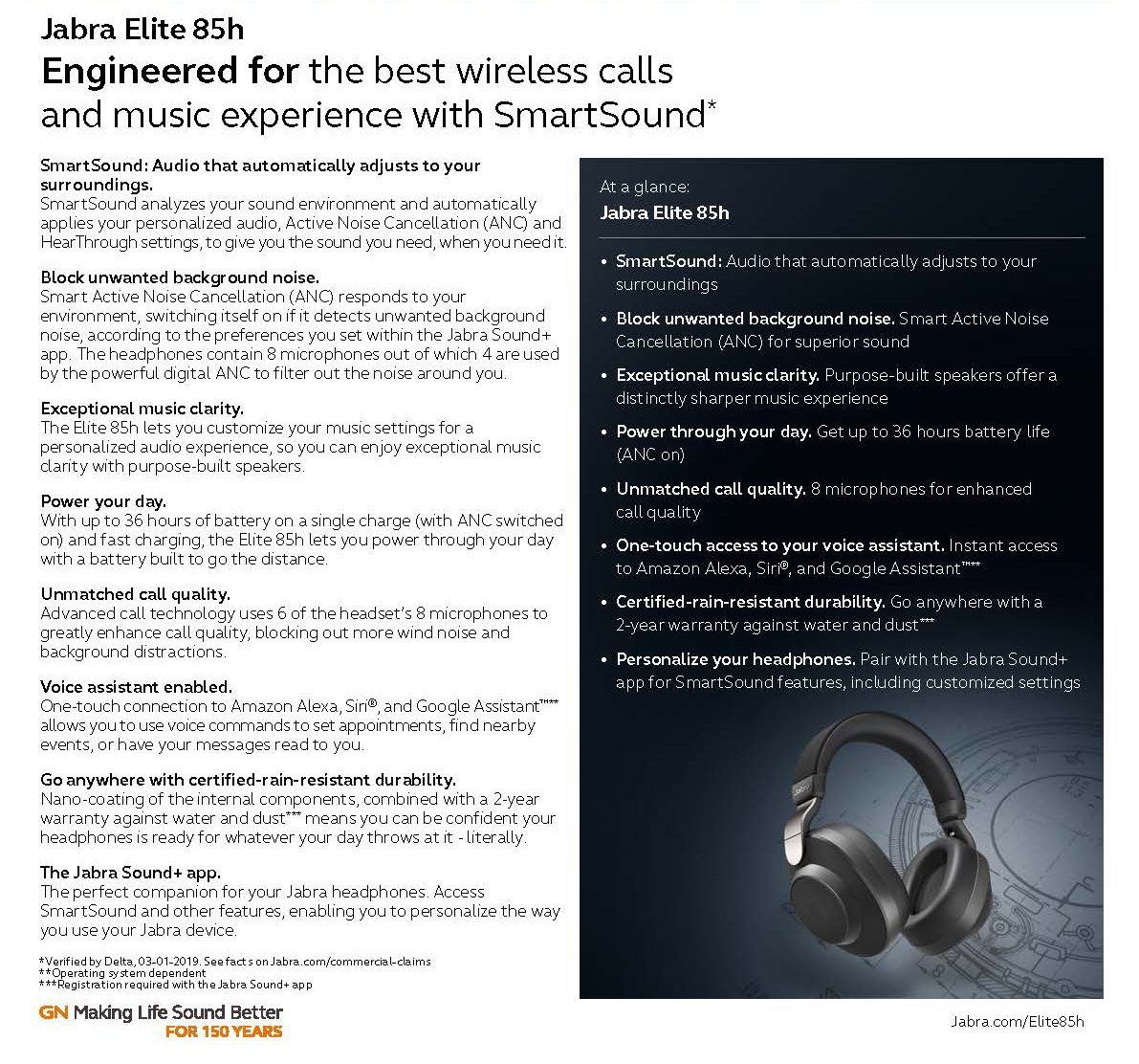 Even the best headphones in the world are worthless if the battery life sucks. The Jabra Elite 85h boasts 36 hours of battery life, with ANC on. Rapid charge technology provides 5 hours of use from just 15 minutes of charging. That's impressive, any way you look at it.