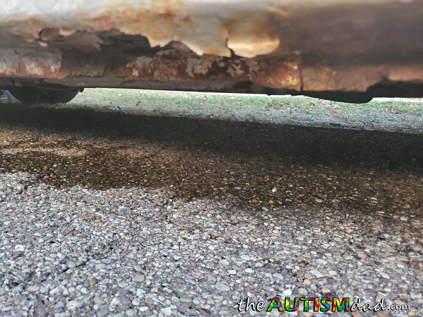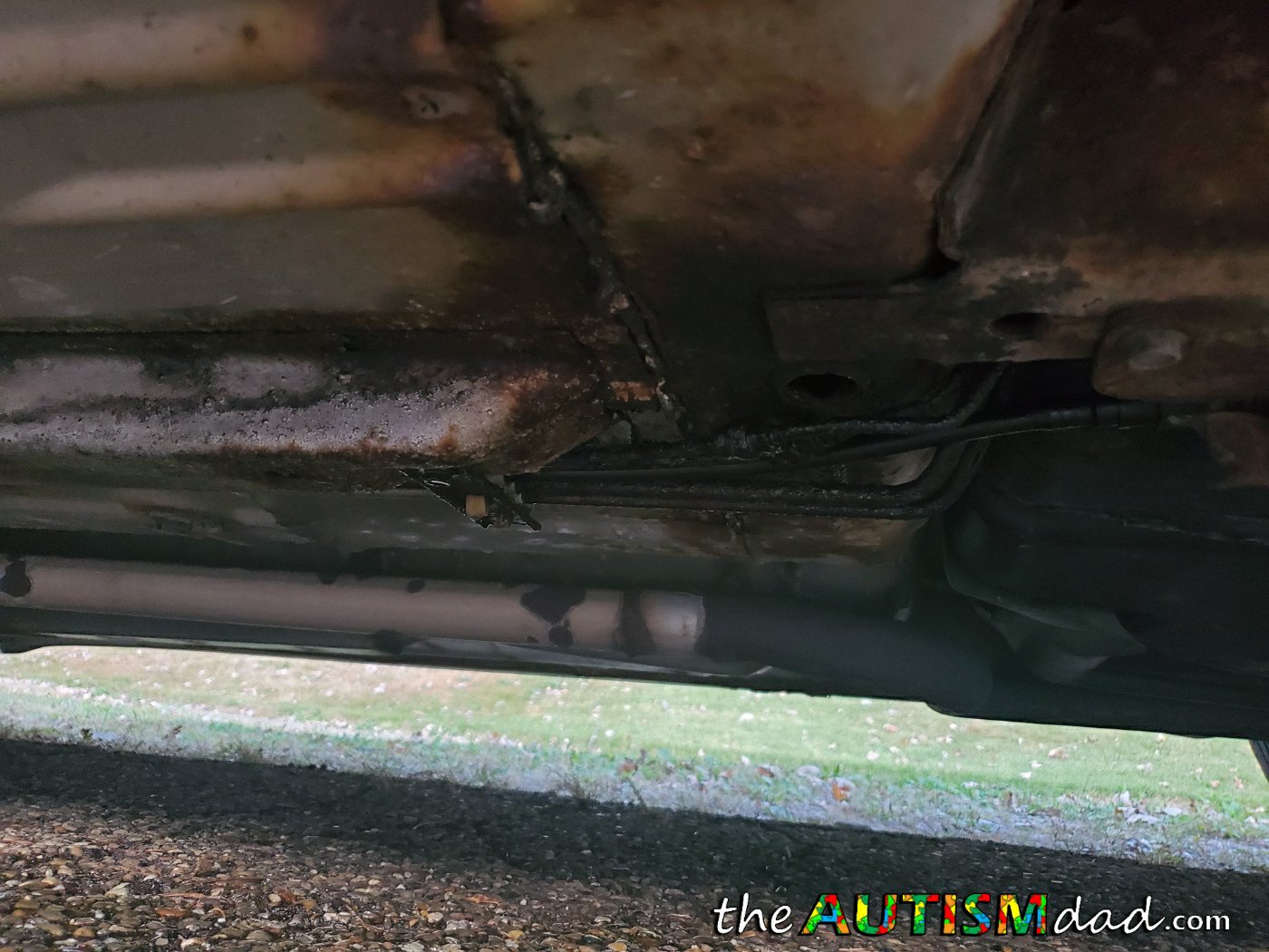 To be completely honest, as bad as this is, we're so incredibly lucky. The line broke and the brakes went out on the second press of the brake pedal. If I hadn't moved the car and just picked the kids up, the second press of the pedal would have been at a very busy intersection. As bad as this is, and it's very bad, that would have been so much worse. At least this way, no one was hurt.