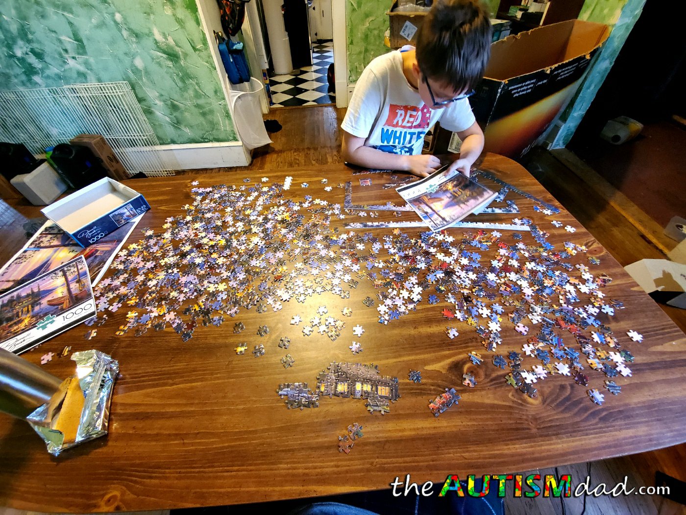 Our latest foray in this *unplugged *lifestyle, has found us working in puzzles. There's nothing quite like spending a rainy Sunday afternoon working on a 1000 piece puzzle with my youngest, Emmett.