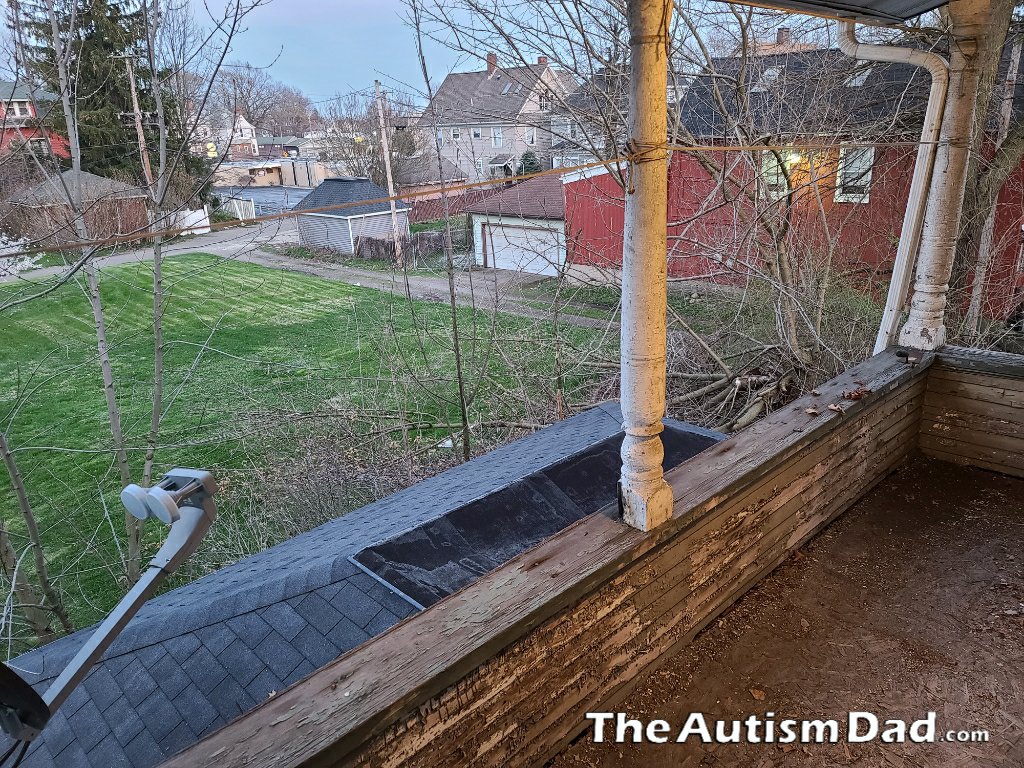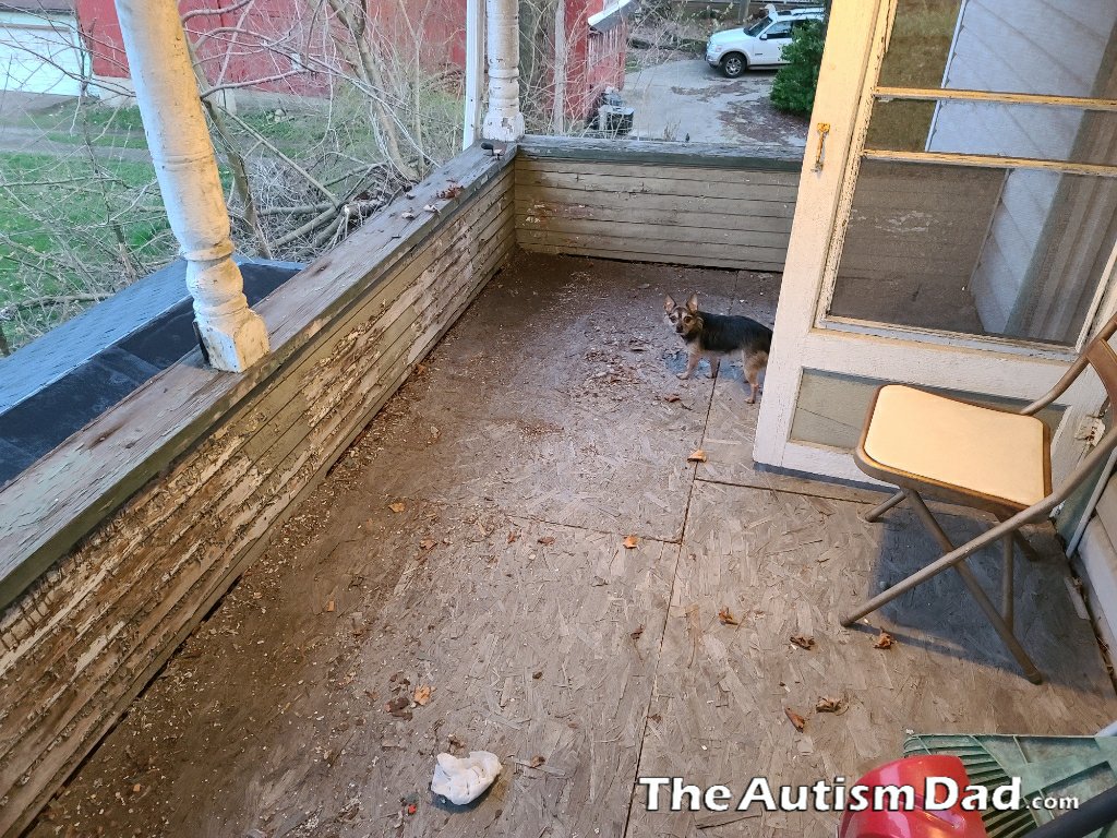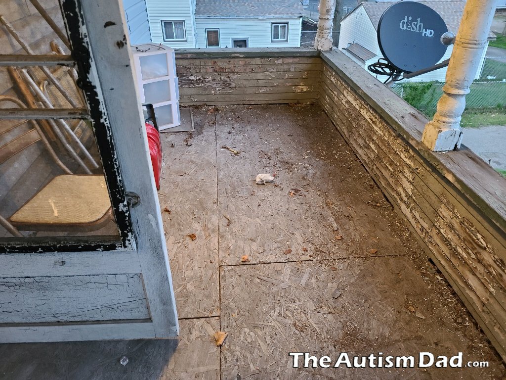 I thought I could put a small table and some chairs out here and maybe Gavin could sit out here and write or type up his book. He's not comfortable being outside cause he's afraid of getting sick. This way no one can come near him.