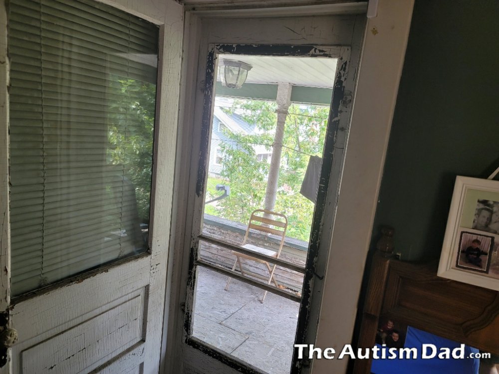 We took on an impromptu project this afternoon. The screen door to the balcony off my bedroom was probably original to the house. The balcony is actually called a sleeper porch but we've never used it for that. It's just a nice place to sit in the spring and fall.