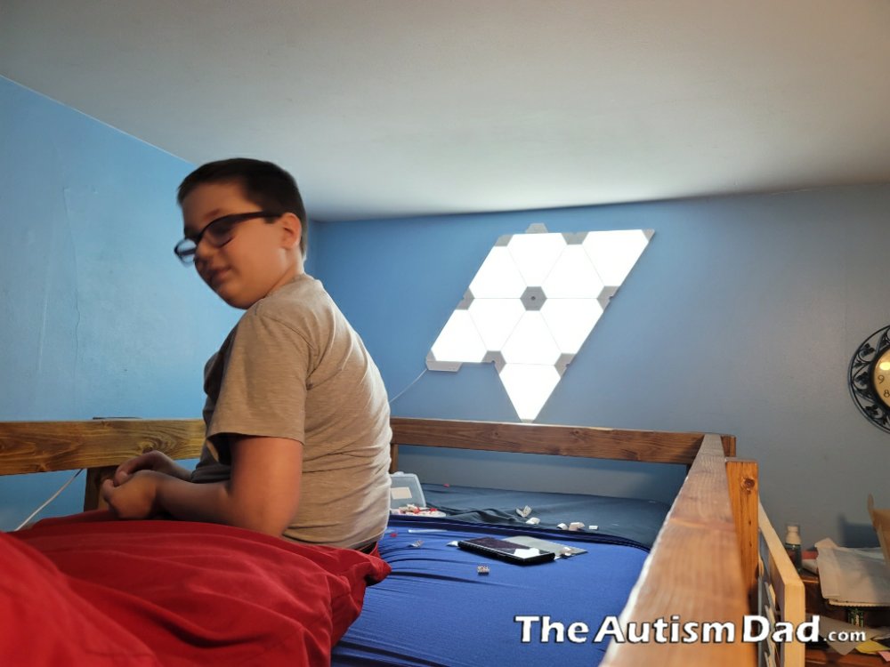 The latest effort to improve my family's quality of life is helping to provide a more sensory friendly environment for the boys, at least in their bedroom. Yesterday, Emmett and I installed the Nanoleaf panels we've had forever but never got around to installing.