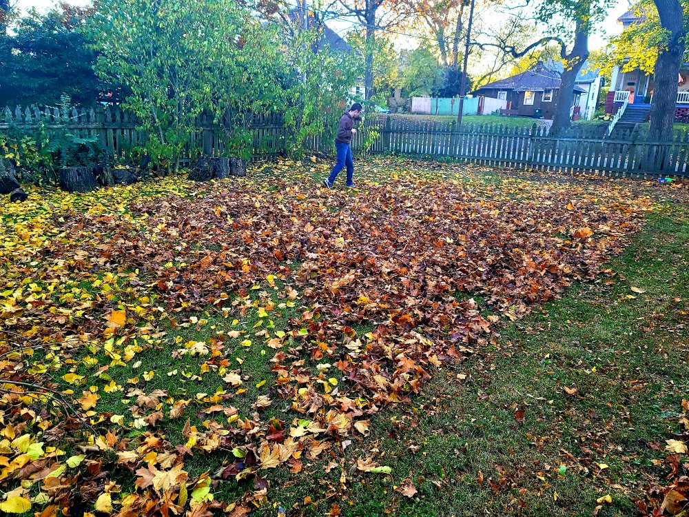 Anyway, the boys and I took care of the 2nd round of leaves in the yard. Our yard collects the neighborhood leaves because it's fenced in. I guess they blow in but can't blow back out. This is what it looks like a few times a week, all the way through December and sometimes into January.