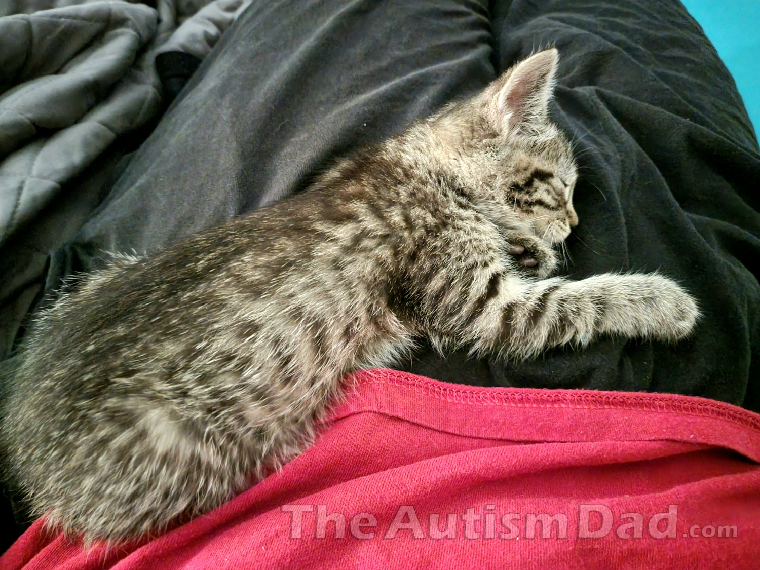 I was driving 70 mph down the interstate and saw this little kitten on the side of the freeway. She was scared and wandering into the road. I was able to stop about 3/4 of a mile down the road, so I pulled over. I ran back and she still hadn't been hit by traffic. I scooped her up and ran back to the car. I do understand that by doing this, especially with the kids in the car, has all but guaranteed we are adopting a kitten. I'm not totally sold on the idea yet and do not want another cat. Having said that, it wouldn't be the worst thing in the world and I feel good that I was in the right place at the right time. She's maybe six weeks old but in good health. Looks like someone dumped her on the side of the road. Very sad.