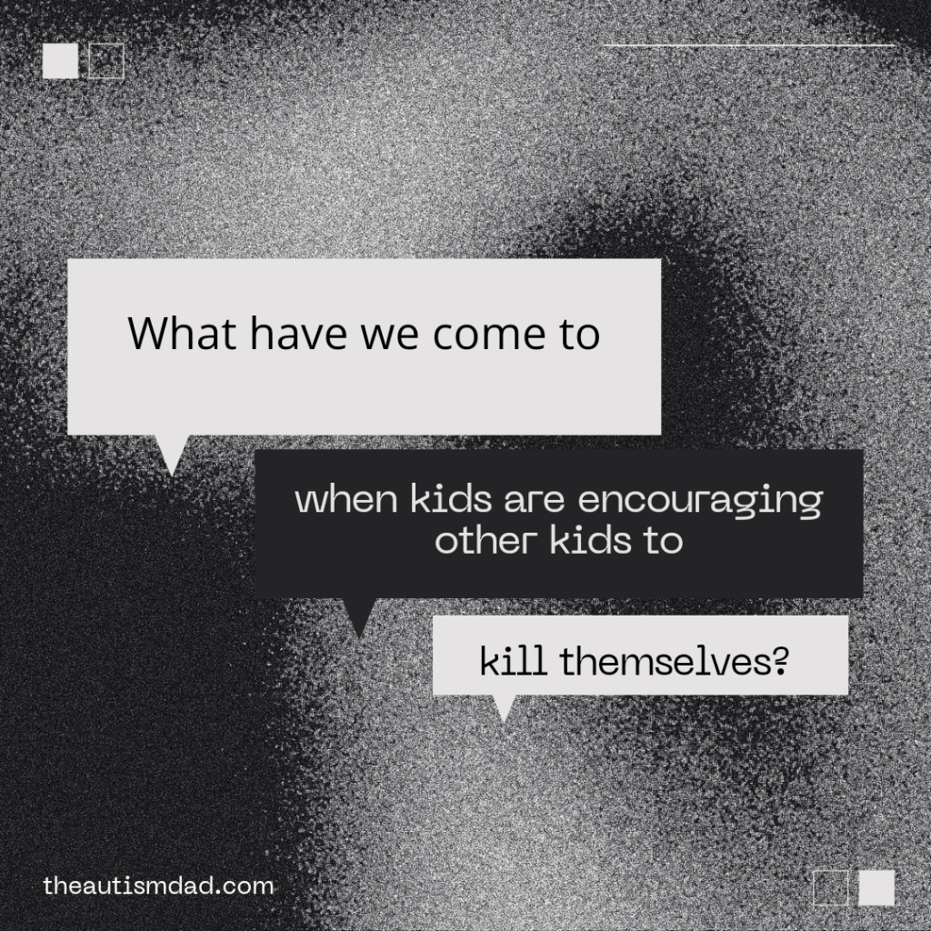 Before anyone comes back at me with the whole *kids will be kids *nonsense, there is something seriously wrong when children are encouraging other children to kill themselves. This is not okay and just because you can't see your child ever doing something like this, doesn't mean they aren't. You may be surprised what you'd discover when you monitor their online activity.