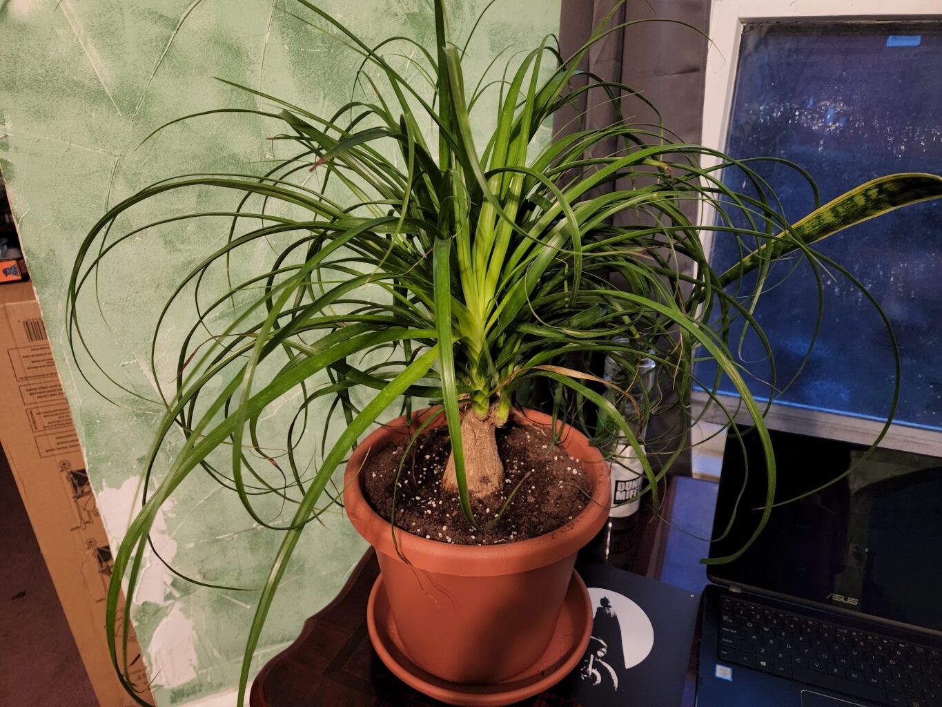 It's a Ponytail Palm or Palm Ponytail, I can't remember. I repotted it last night and it's doing great. Plants seem to bring life to the house and I like having them around. ☺
