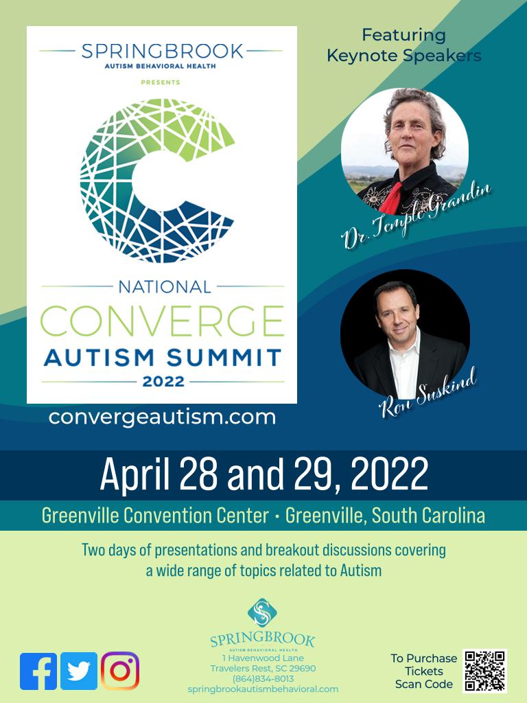 For more information about the summit, please visit www.convergeautism.com or Twitter, Facebook, and Instagram @springbrookbhs. The 2022 National Converge Autism Summit in Greenville, South Carolina. Tickets are on sale now.