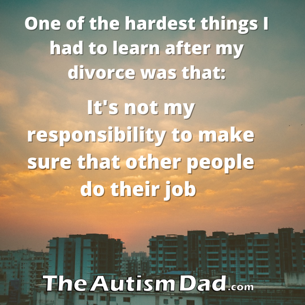 One of the hardest lessons I've had to learn was that it's not my job to make sure that other people do their job. My job is to raise my kids, make sure they know that they're loved, help them pick up the pieces everytime their hearts break, and continue to forge a path forward toward a brighter future. That's my job.