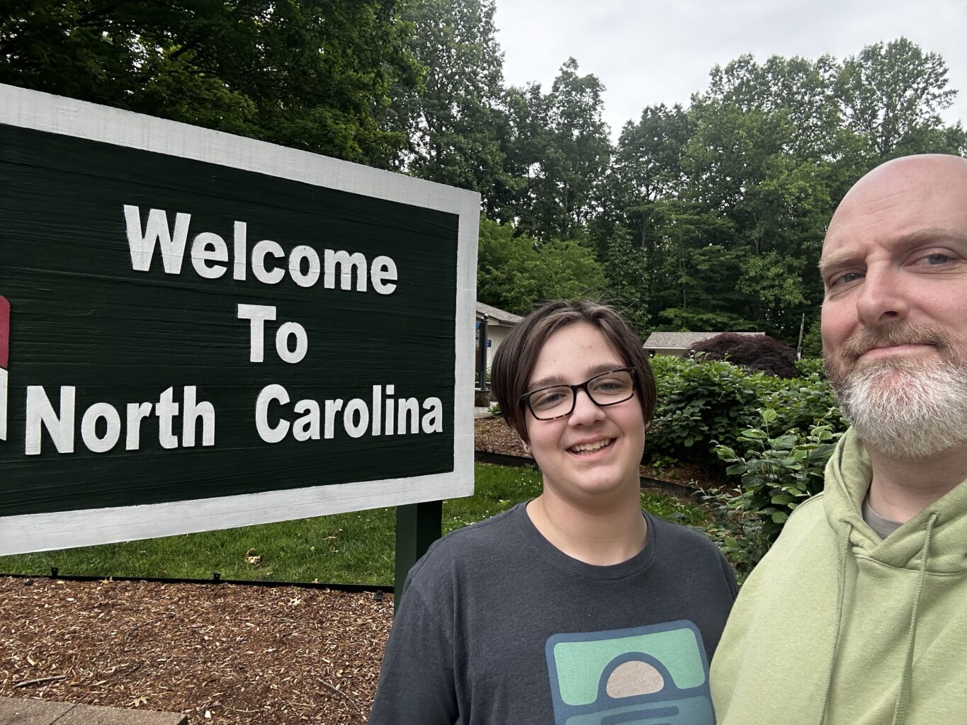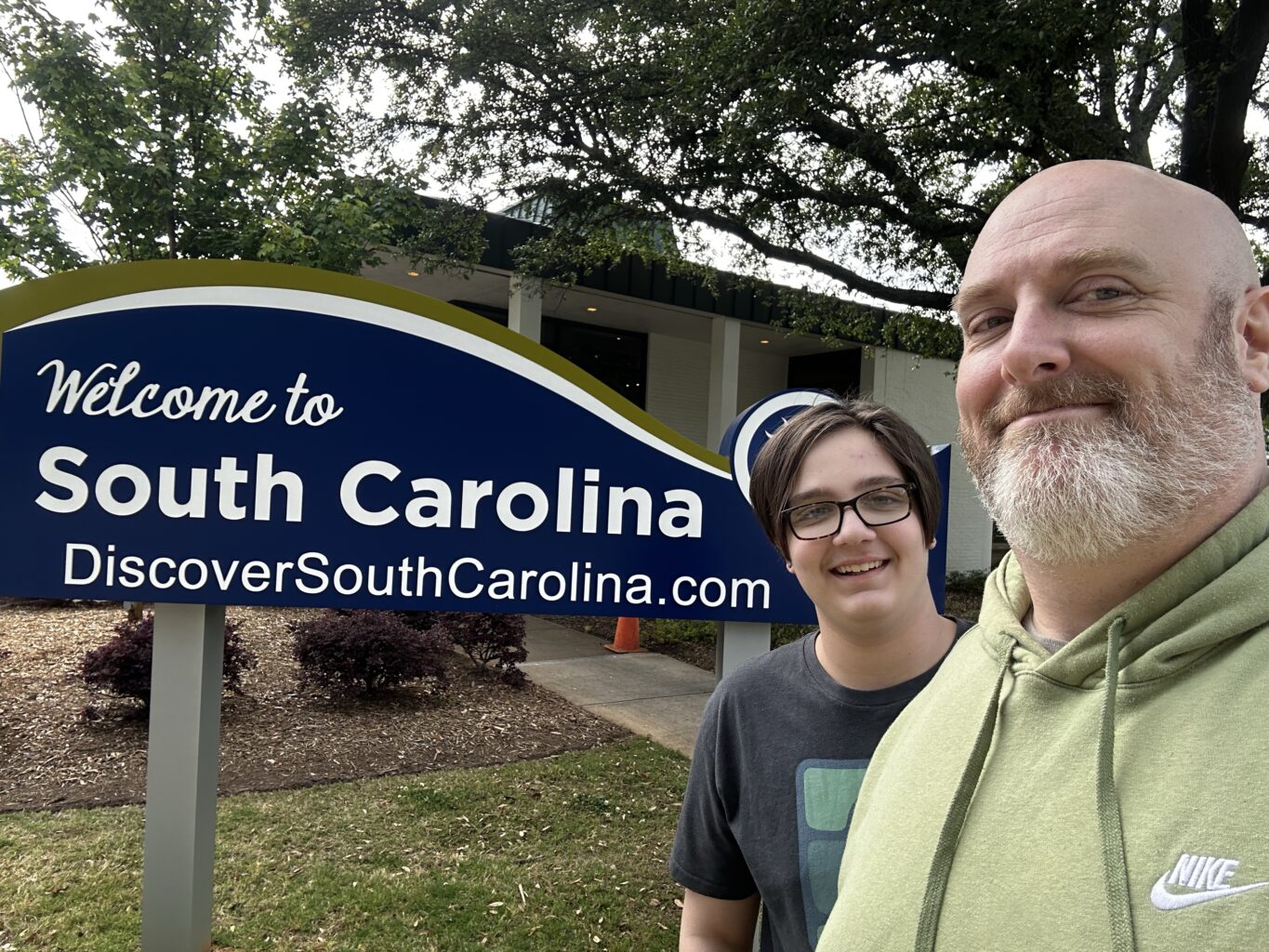 Emmett and I made it safely to South Carolina last night. It took us about 9 hours or so of actual driving and it rained most of the way. Emmett handled the ride really well and if having a great time so far.