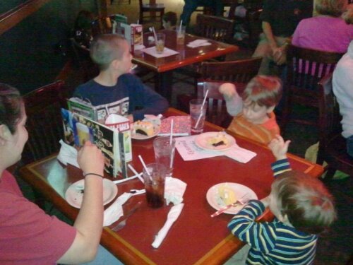 We had a surprise party for my dad this afternoon. One of the very rare time we take all the kids out at the same time. It went pretty well and the kids had fun but are completely overstimulated. It's going to be a very long night.