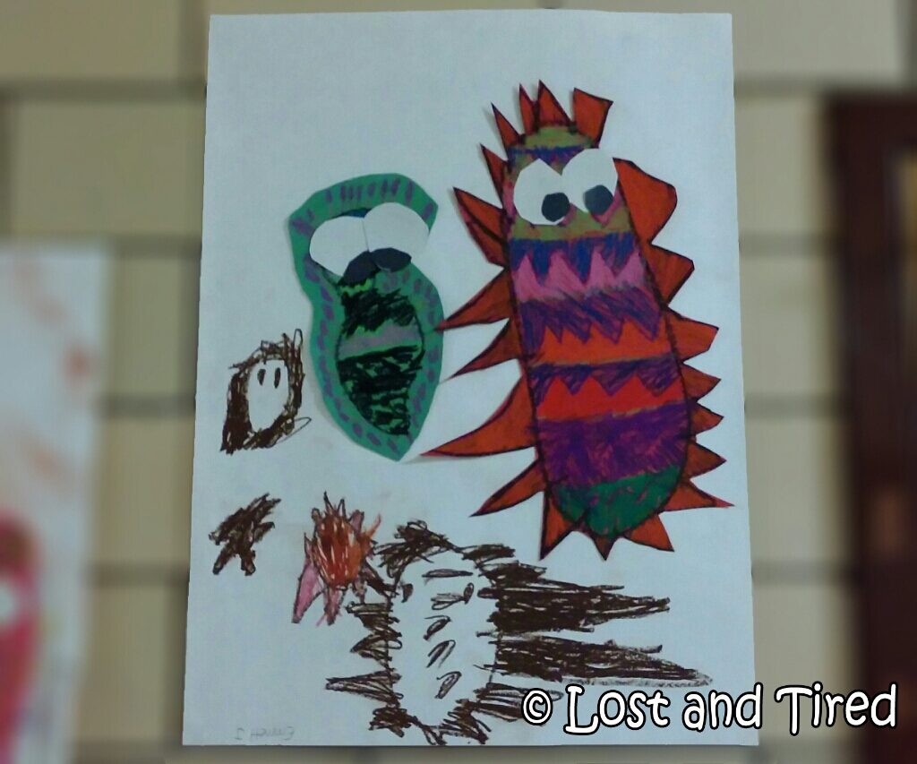 Basically, I think these were just slides of single cell organisms but to kids in kindergarten, they are germs. Anyway, this is what Emmett created and I think it's awesome. What a cool way to teach kids... I can't wait to get this home so we can hang it up in his room.