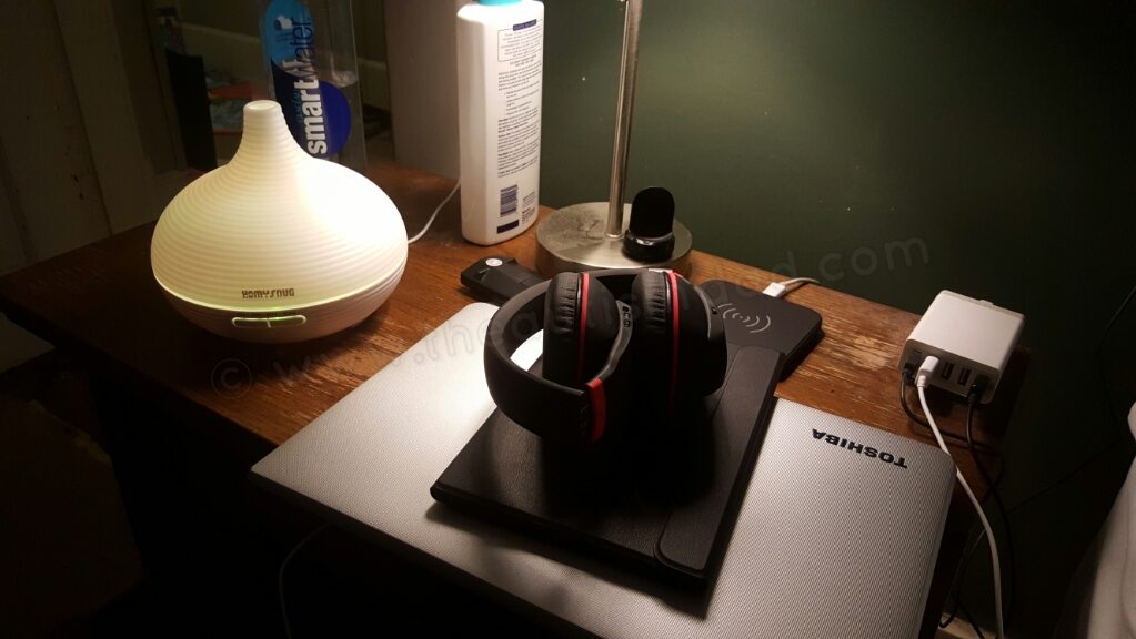 Pretty much everything you see here are review items that I've received for testing and playing with. The newest addition to the nightstand is the essential oils diffuser. It's pretty fricking amazing and I have a few more coming next week for the boys rooms.