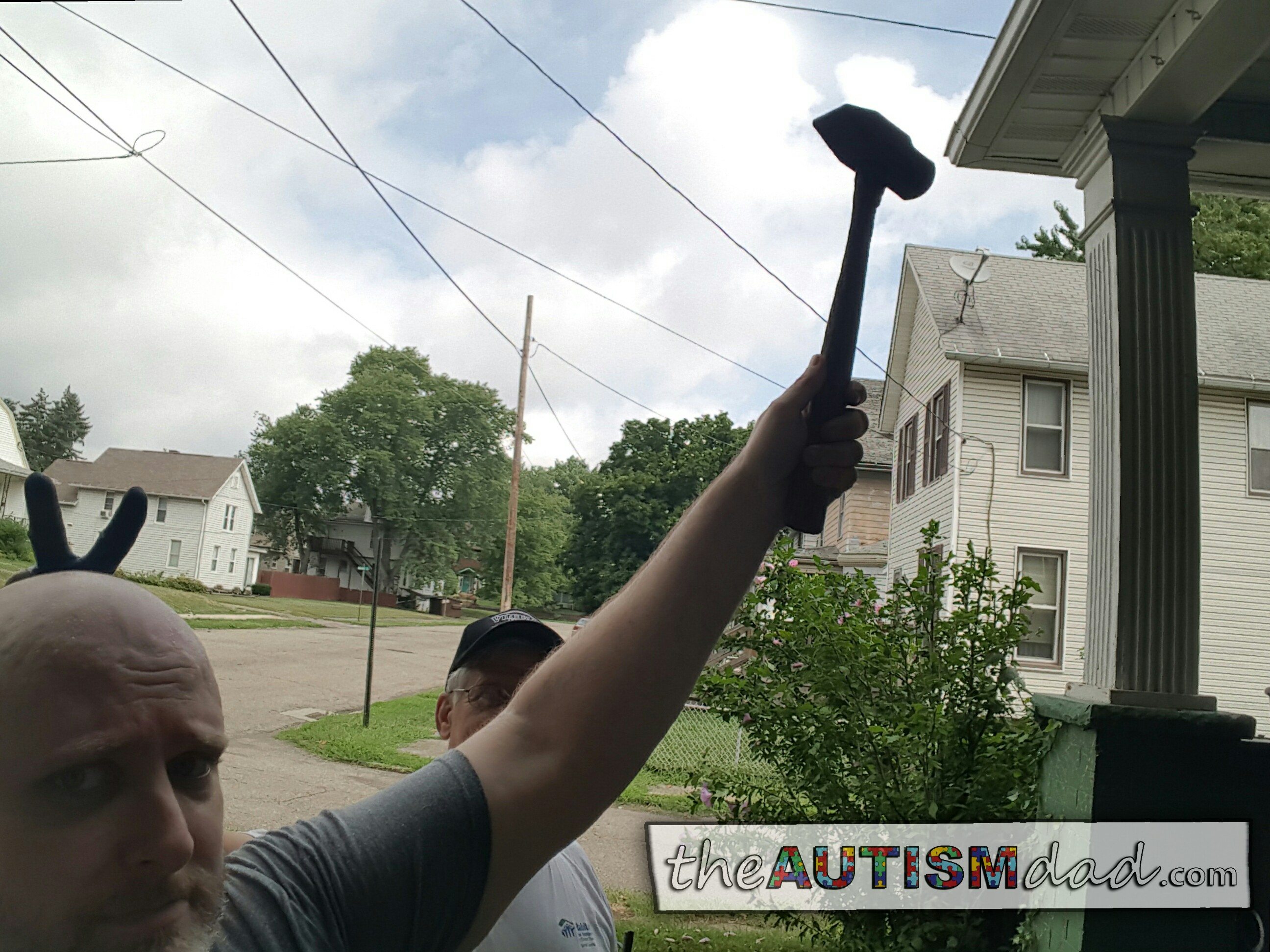 I had one helluva day yesterday. My Dad and I spent the whole day working on the front steps. Originally, we were going to build over top of the prefab concrete steps that were preexisting. This was because we thought the concrete was much thicker than it really was.