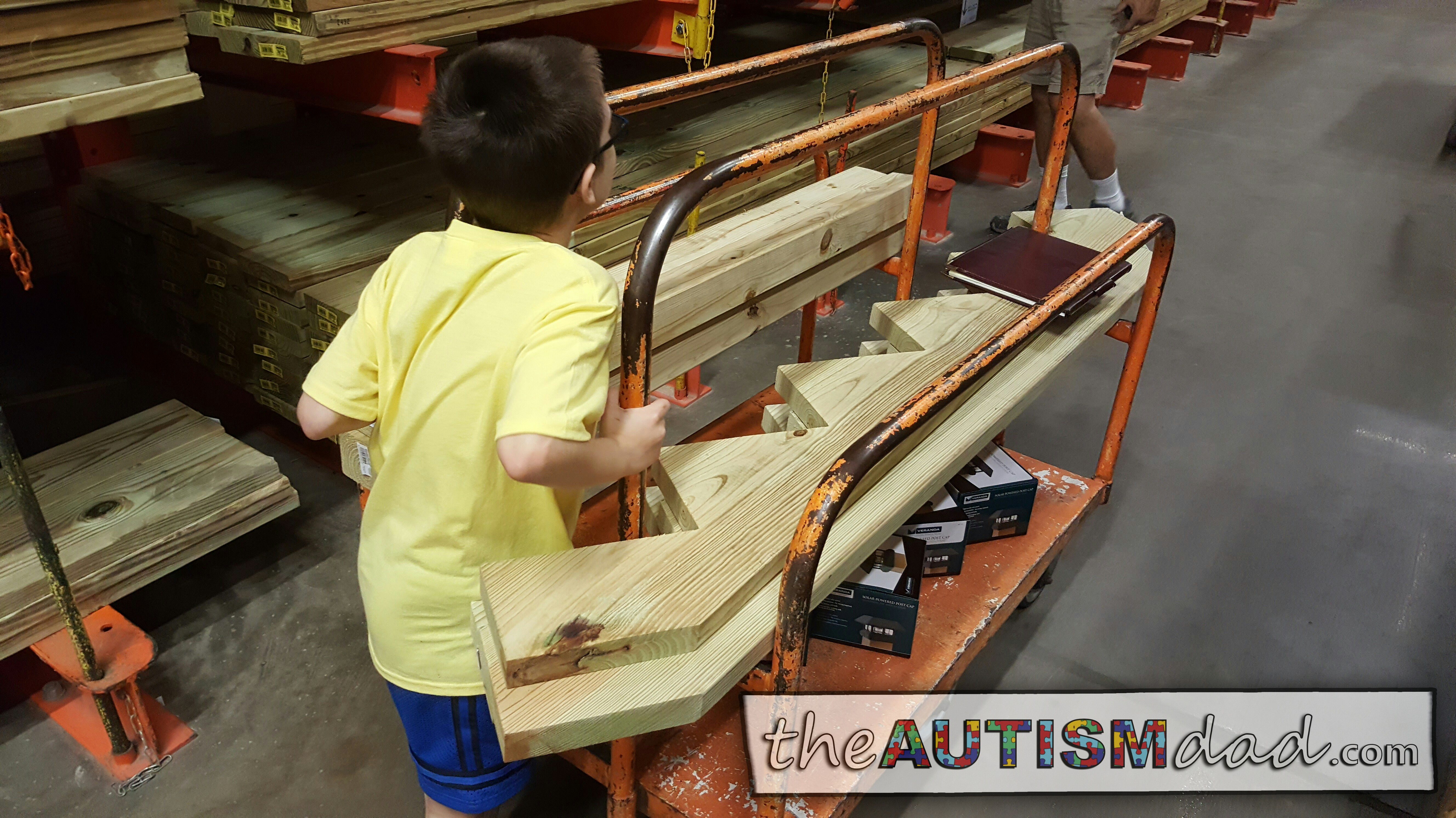 Emmett had to go to Home Depot with us. We drove separately so I could bring Emmett and let him be a part of the process of gathering materials. You have to check out the pictures be a use he was way too stinking cute.