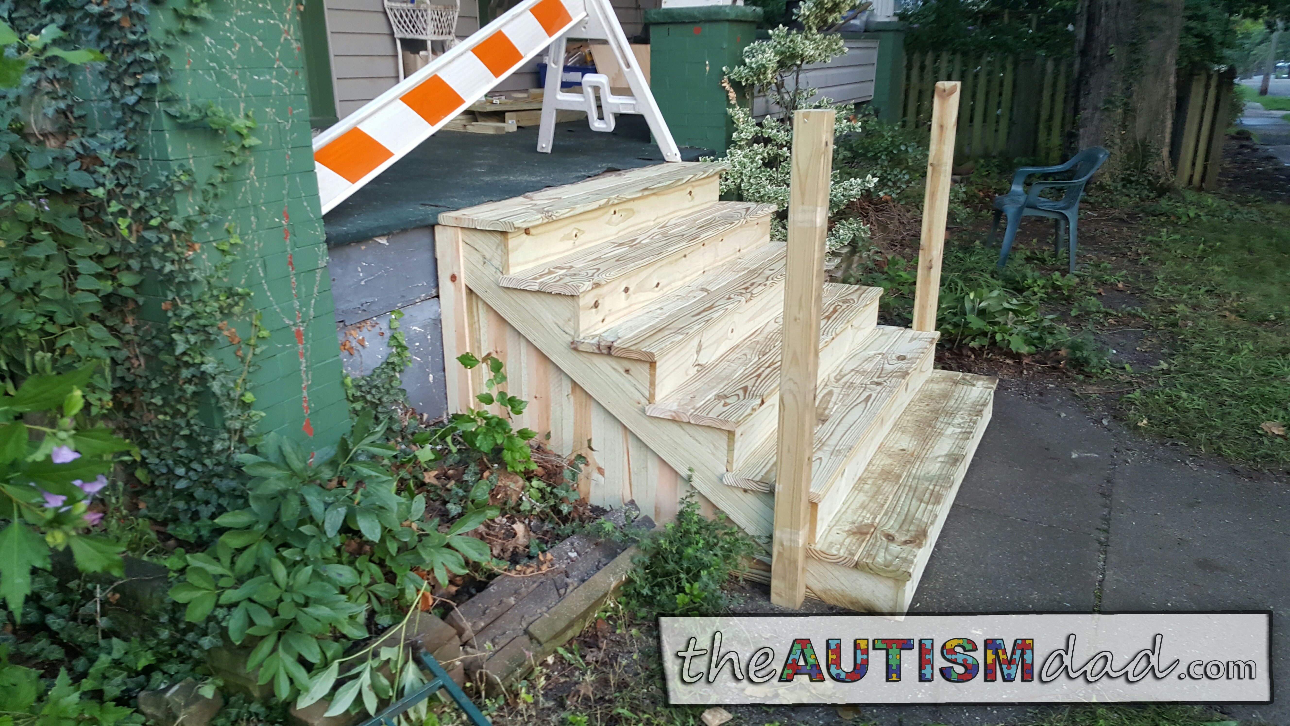 We had to make a couple of trips to Home Depot for supplies but we completed about 85% of the project yesterday and all we really have left is to build the handrail. Unfortunately, we ran out of daylight and frankly, we were both exhausted.