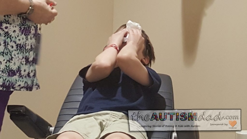 Emmett wasn’t having any of that shit. That little red band drove him fucking crazy. While we were waiting for his eyes to dilate, I tried to help him work through it but if I didn’t get it removed, he was going to chew his hand off. I explained to the staff that he was Autistic and he just couldn’t deal with the wrist band. They removed it and Emmett was immediately in a better mood.