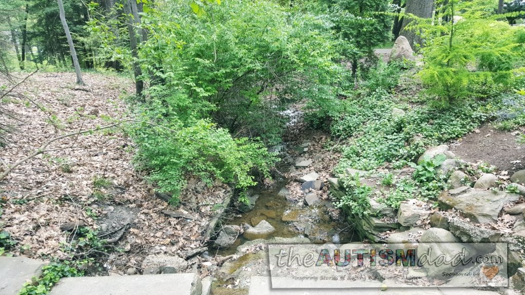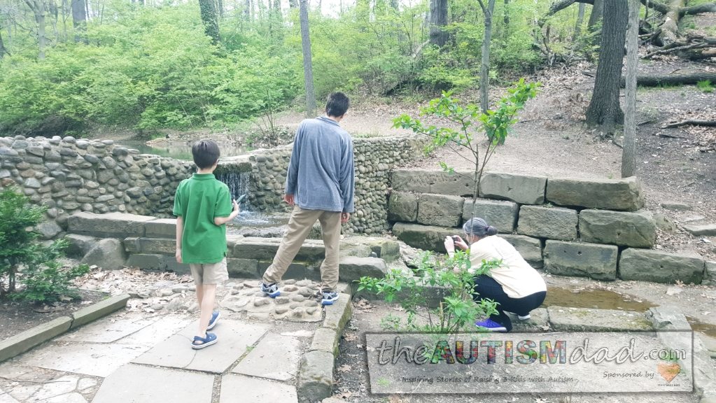 Gavin went straight to his favorite spot and sat down. He loves these big rocks above a small waterfall.