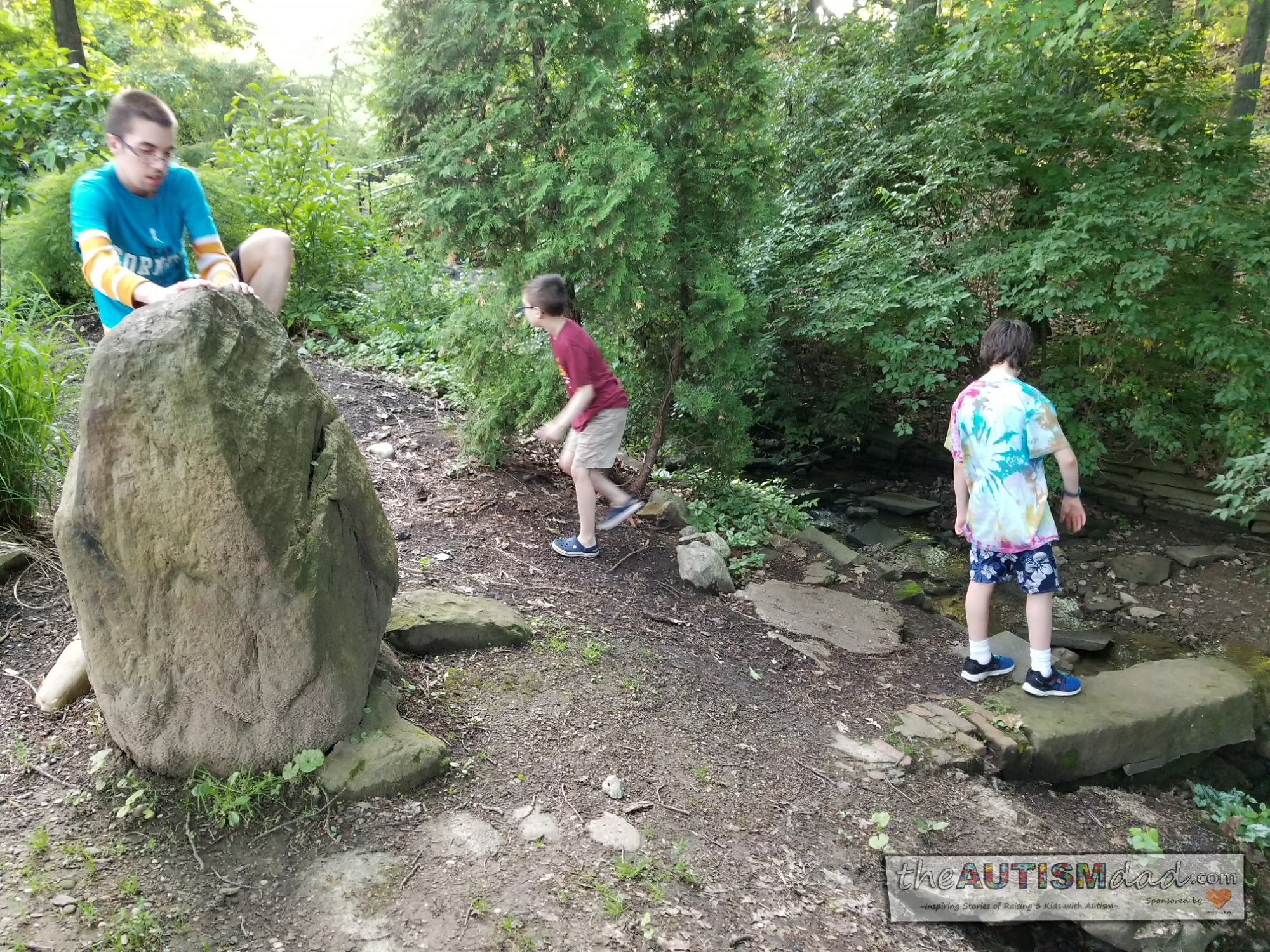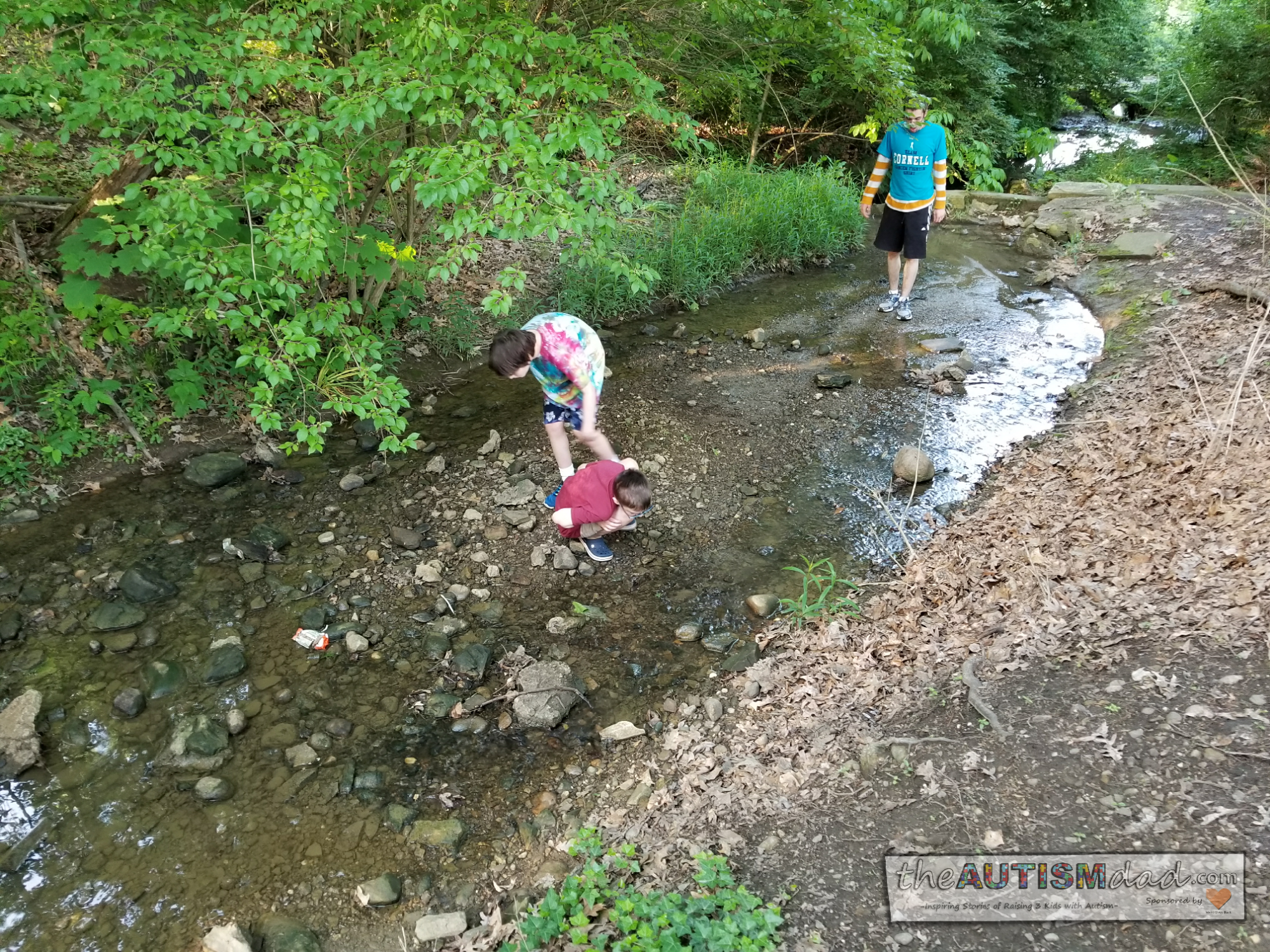 At one point, all three of the boys were exploring the creek together. They flipped over rocks, and carefully put them back the way they were found. Again, these were simple things to do. They not only enjoyed the activities, but were much calmer upon returning home.