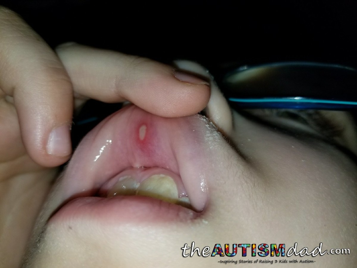 The pictures above show one of the ways this fever disorder impacts Emmett. When a fever cycle hits, Emmett's mouth breaks out in these extremely painful sores. No one has ever been able to find a physical cause for these ulcers, but they will fill his mouth and travel all the way down the back of his throat.