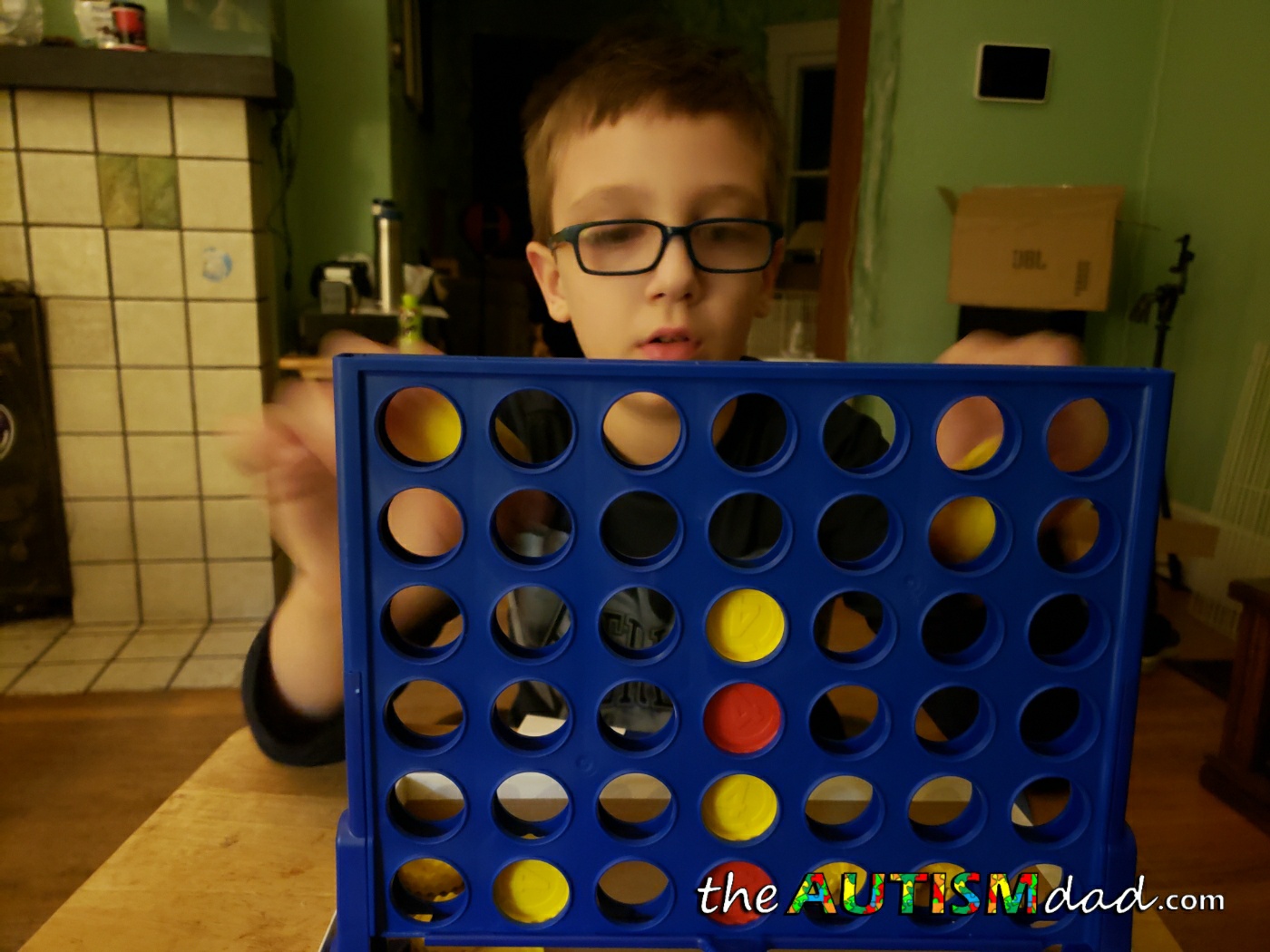 Last night, I was able to get Emmett to play a game before bed. We couldn’t find UNO but we did find Connect Four.