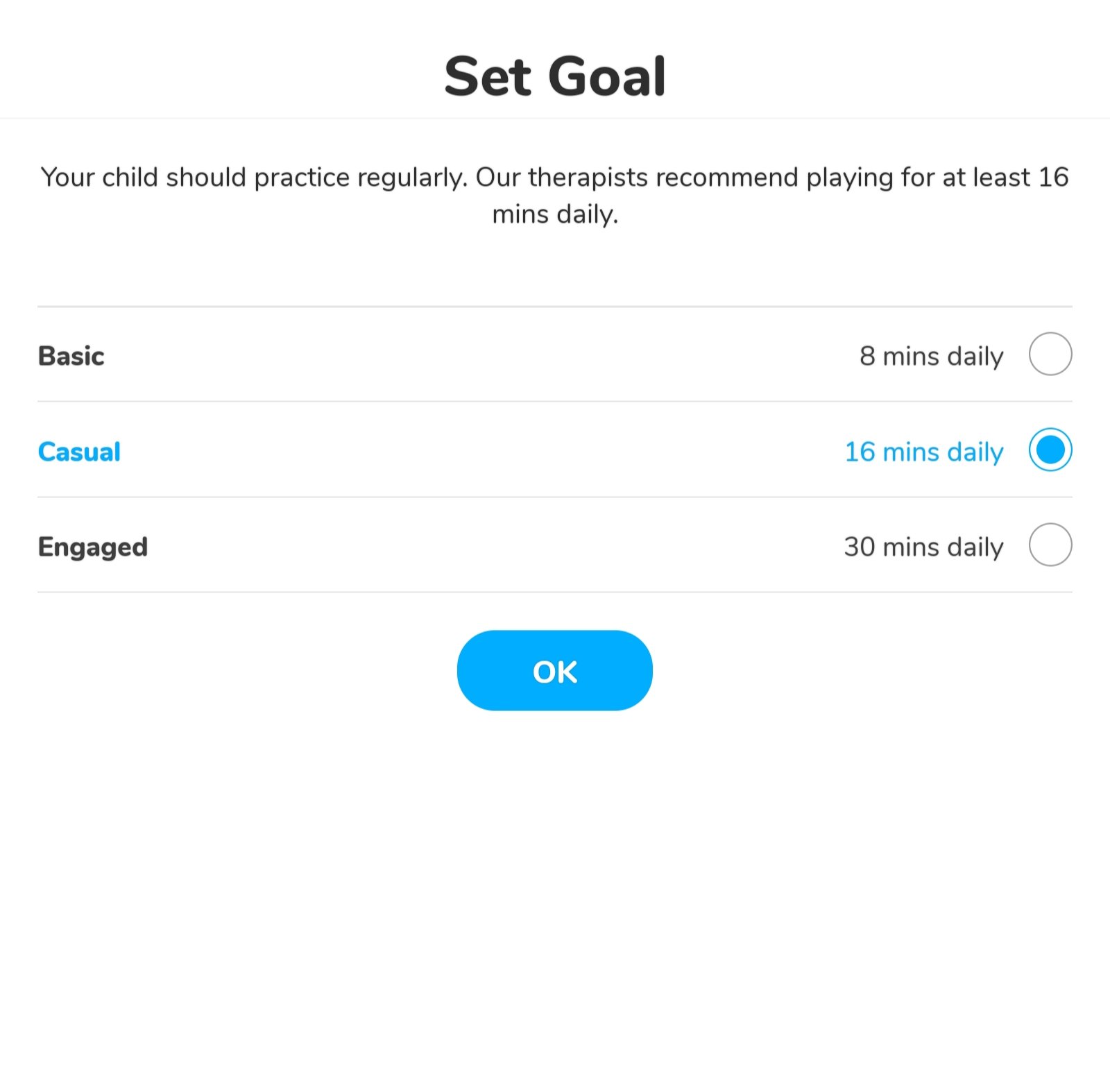 Otsimo recommends kids play for at least sixteen minutes a day.
