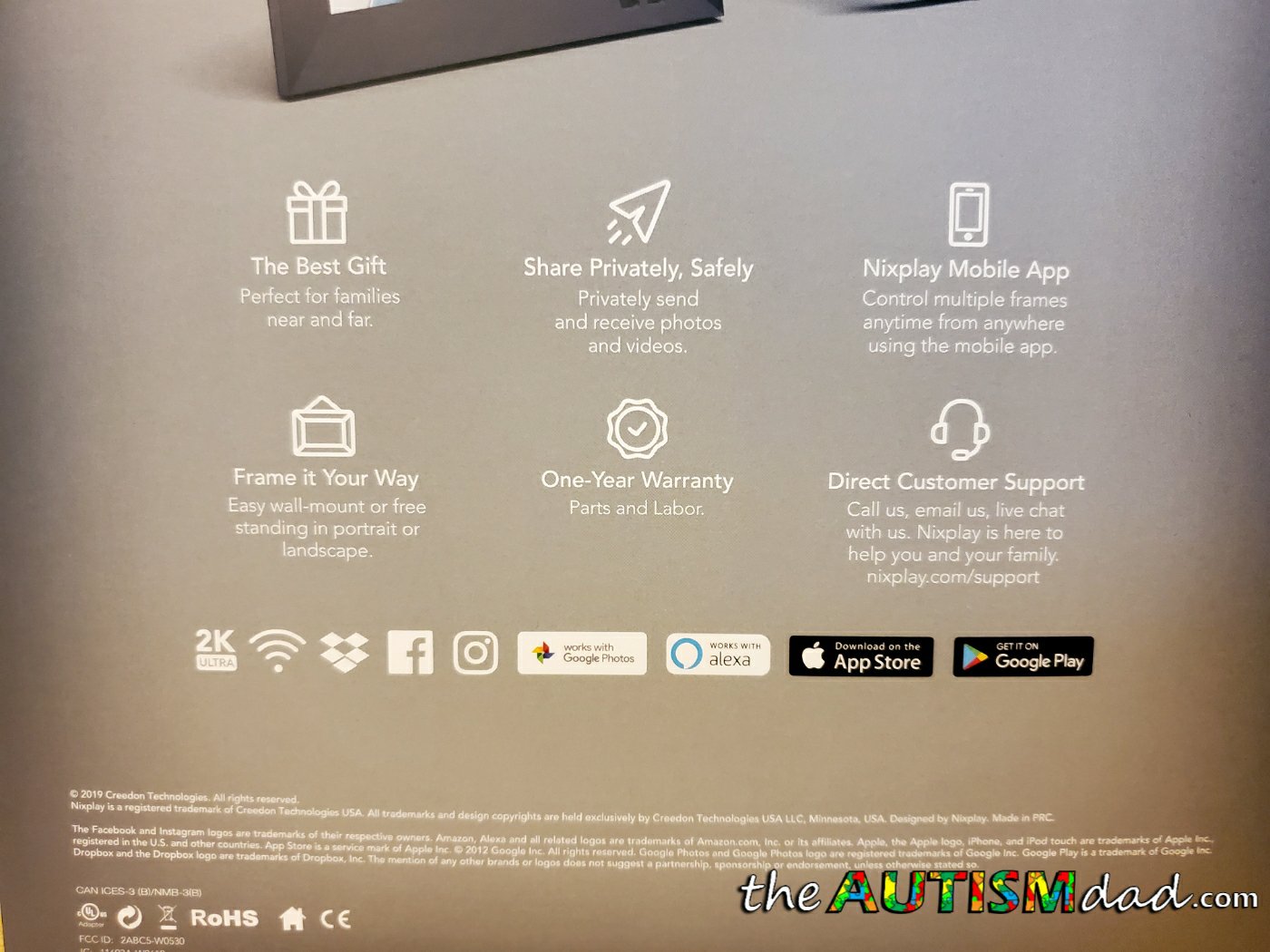 This is a Smart Frame which means that the frame connects to your wifi and displays pictures from the cloud. You can connect it to services like Google Photos, Facebook, Dropbox, and Instagram. There is no option for external media and I’m okay with that.